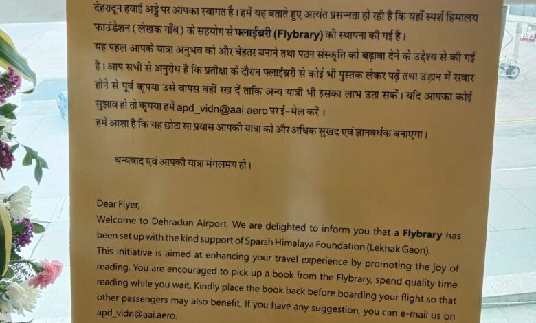 देश के पहले लेखक गांव संग एएआई देहरादून की अभिनव पहल—यात्रियों के लिए ‘फ्लाईब्रेरी’ का शुभारंभ